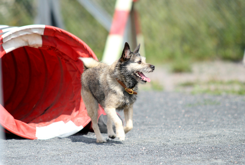 Pienet lämmittelyt ja meidän vuoro koittikin, otettiin kaksi starttia, joista ensimmäiseltä hylky ennen ensimmäistäkään estettä. -Ei, ei haahuilua tai karkaamista. Panta -unohdin ottaa sen pois. Vaan tuhoon oli tuomittu koko yritys ilman pantaepisodiakin, sillä jo ensimmäisessä putkensuussa pientä koiraparkaa odotti mörkö. Eeppisen ohjaamiseni seurauksesta Muru taisi ehtiä maalailemaan pienessä päässään putkikummituksen irvistelemään putkensuulle. Ei mennyt putkeen, ei. Eikä mennyt seuraavaankaan. Voin häpeäkseni todeta meidän menon varmasti näyttäneen jopa meidän sähläysasteikolla aikamoisia lukemia..
